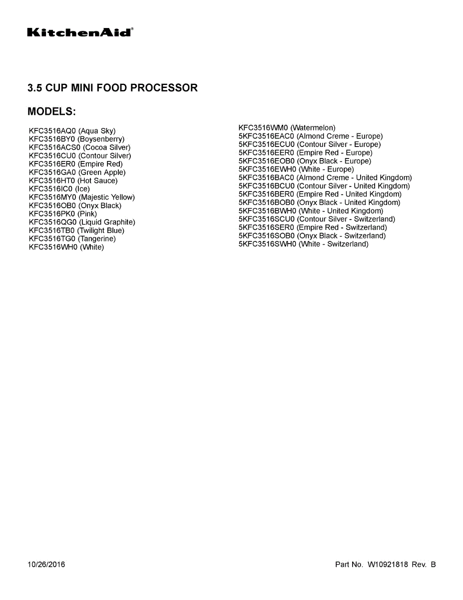 Parts for Whirlpool KFC3516IC0: 01 - Cover Sheet Parts