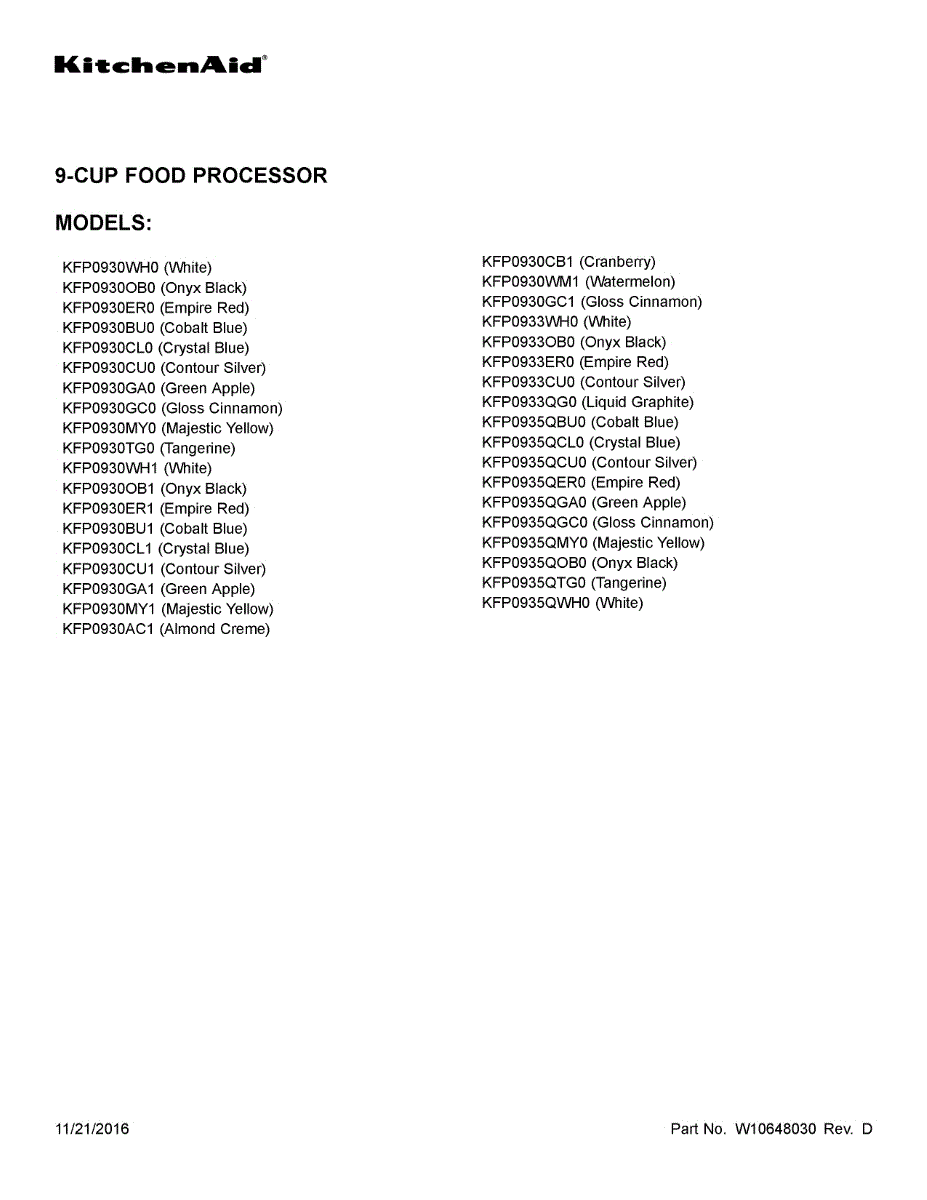 Whirlpool Food Processor Parts