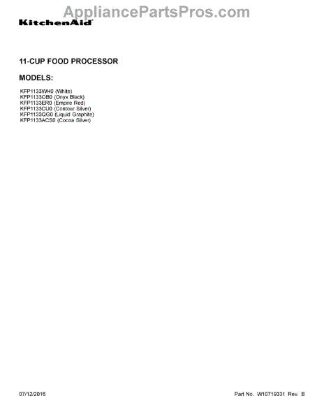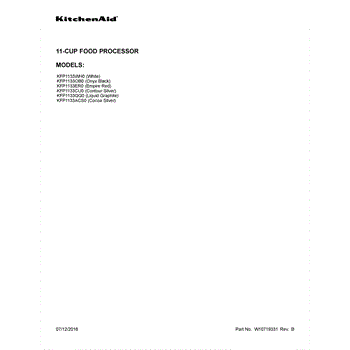 Parts for Whirlpool KFP1133QG0: 01 - Cover Sheet Parts