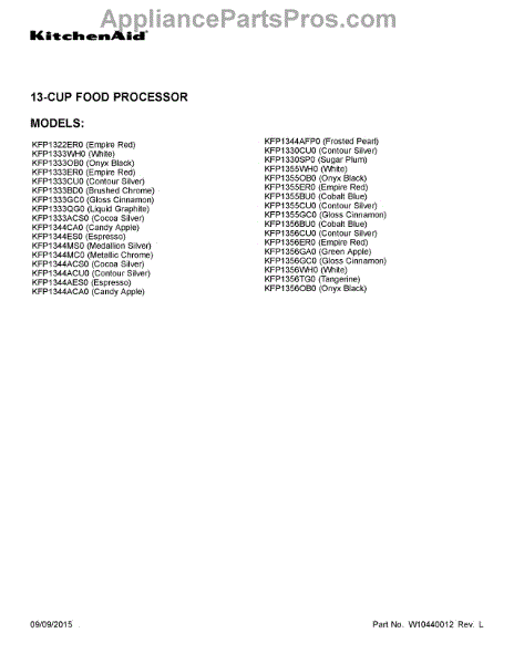Parts for Whirlpool KFP1356CU0: 01 - Cover Sheet Parts