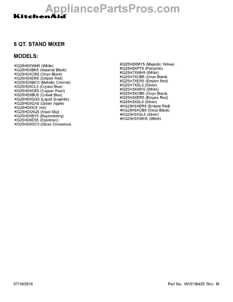 Parts for Whirlpool KG25H0XAQ5: 01 - Cover Sheet Parts