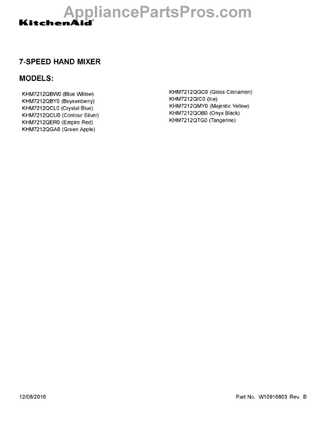Parts for Whirlpool KHM7212QTG0: 01 - Cover Sheet Parts
