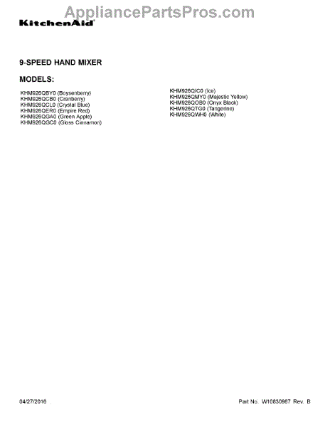 Parts for Whirlpool KHM926QBY0: 01 - Cover Sheet Parts
