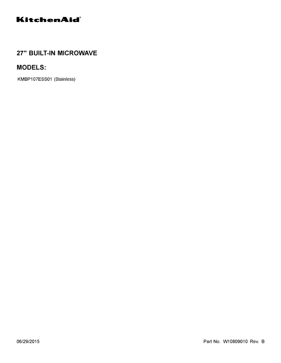 Parts for Whirlpool KMBP107ESS01: 01 - Cover Sheet Parts