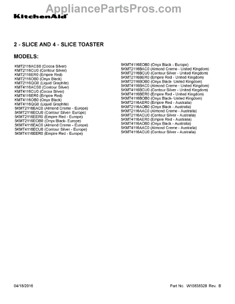 Parts for Whirlpool KMT2116QG0: 01 - Cover Sheet Parts