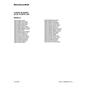 Parts for Whirlpool KSB1575QBU0: 01 - Cover Sheet Parts