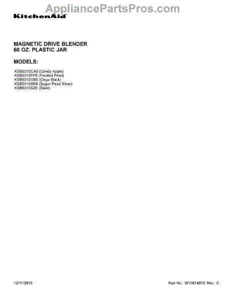 Parts for KSB5010OB0