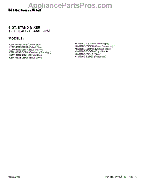 Parts for Whirlpool KSM106GBQCB0: 01 - Cover Sheet Parts