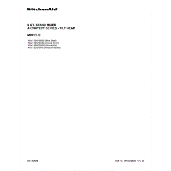 Parts for Whirlpool KSM150APSGD0: 01 - Cover Sheet Parts