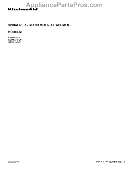 Parts for Whirlpool KSM1APCQ0: 01 - Cover Sheet Parts
