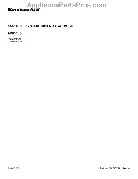 Parts for Whirlpool KSM2APC0: 01 - Cover Sheet Parts