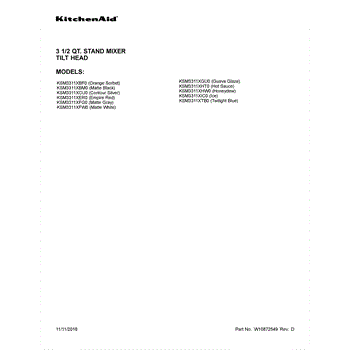 Parts for Whirlpool KSM3311XHW0: 01 - Cover Sheet Parts