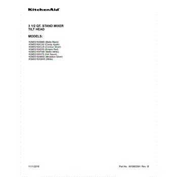 Parts for Whirlpool KSM3316XCU0: 01 - Cover Sheet Parts