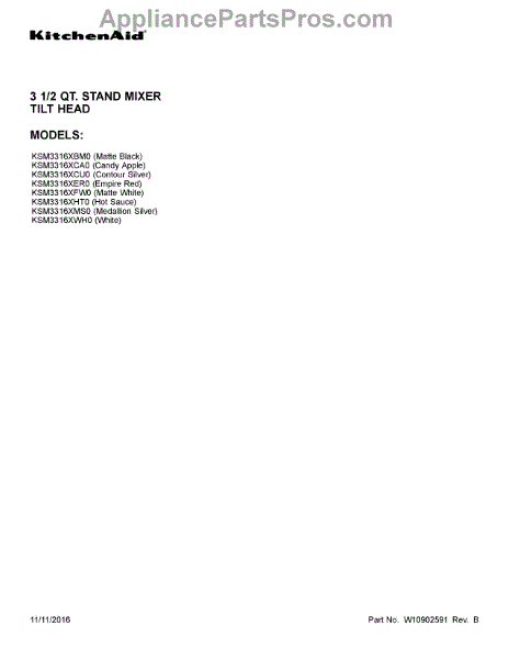 Parts for Whirlpool KSM3316XER0: 01 - Cover Sheet Parts