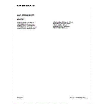 Parts for Whirlpool KSM500Q2GR0: 01 - Cover Sheet Parts