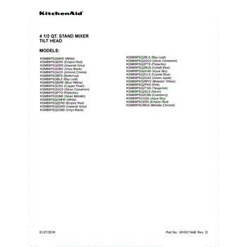 Parts for Whirlpool KSM88PSQ2MY0: 01 - Cover Sheet Parts