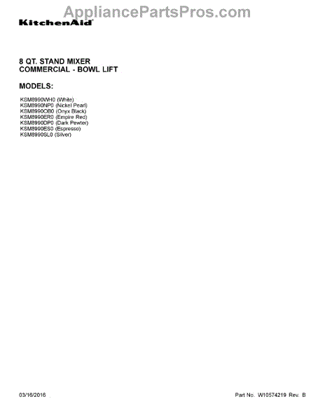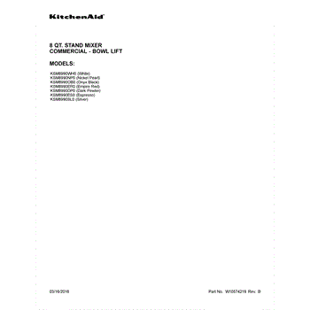 Parts for Whirlpool KSM8990SL0: 01 - Cover Sheet Parts