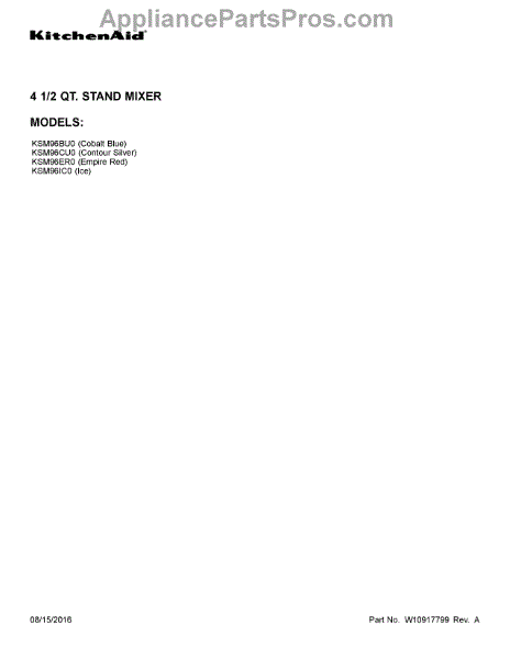 Parts for Whirlpool KSM96CU0: 01 - Cover Sheet Parts