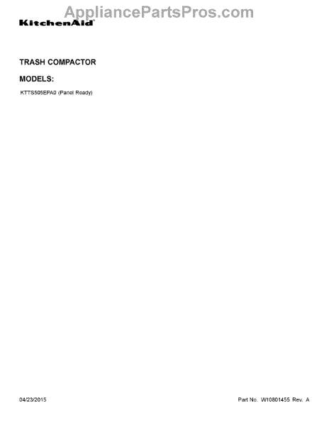 Parts for Whirlpool KTTS505EPA0: 01 - Cover Sheet Parts