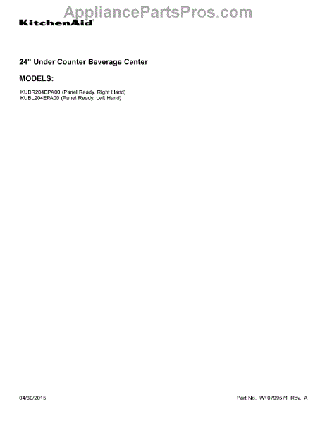 Parts for Whirlpool KUBR204EPA00: 01 - Cover Sheet Parts