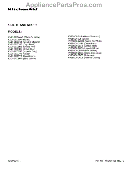 Parts for Whirlpool KV25G0XSL5: 01 - Cover Sheet Parts