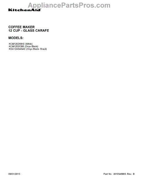 Whirlpool Coffee Maker Parts