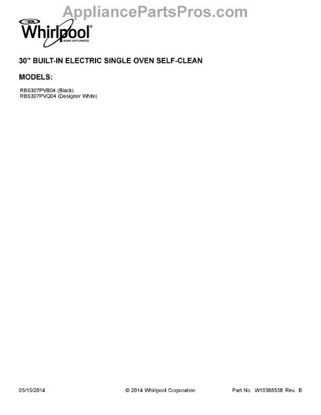 Parts for Whirlpool RBS307PVQ04: 01 - Cover Sheet Parts
