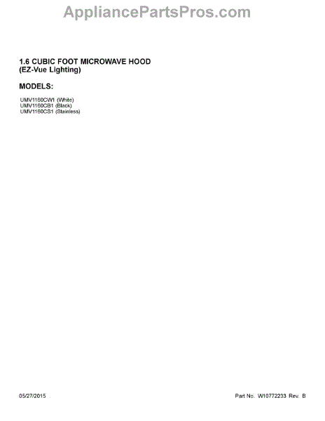 Parts for Whirlpool UMV1160CW1: 01 - Cover Sheet Parts