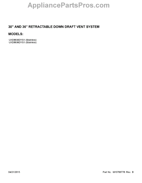 Parts for Whirlpool UXD8630DYS1: 01 - Cover Sheet Parts