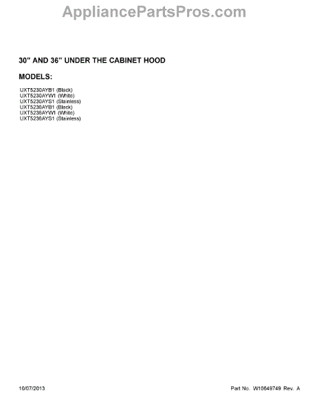 Parts for UXT5230AYB1