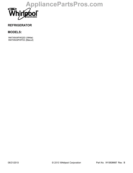 Parts for Whirlpool W4TXNWFWT03: 01 - Cover Sheet Parts