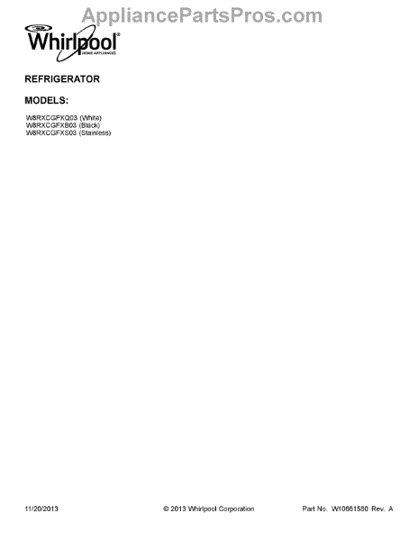 Parts for Whirlpool W8RXCGFXS03: 01 - Cover Sheet Parts