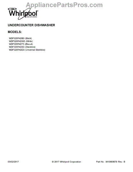 Parts for Whirlpool WDF320PADB3: 01 - Cover Sheet Parts