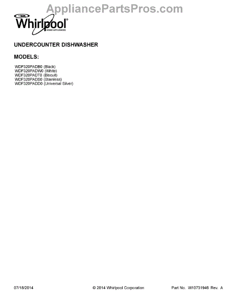 Parts for Whirlpool WDF320PADT0: 01 - Cover Sheet Parts