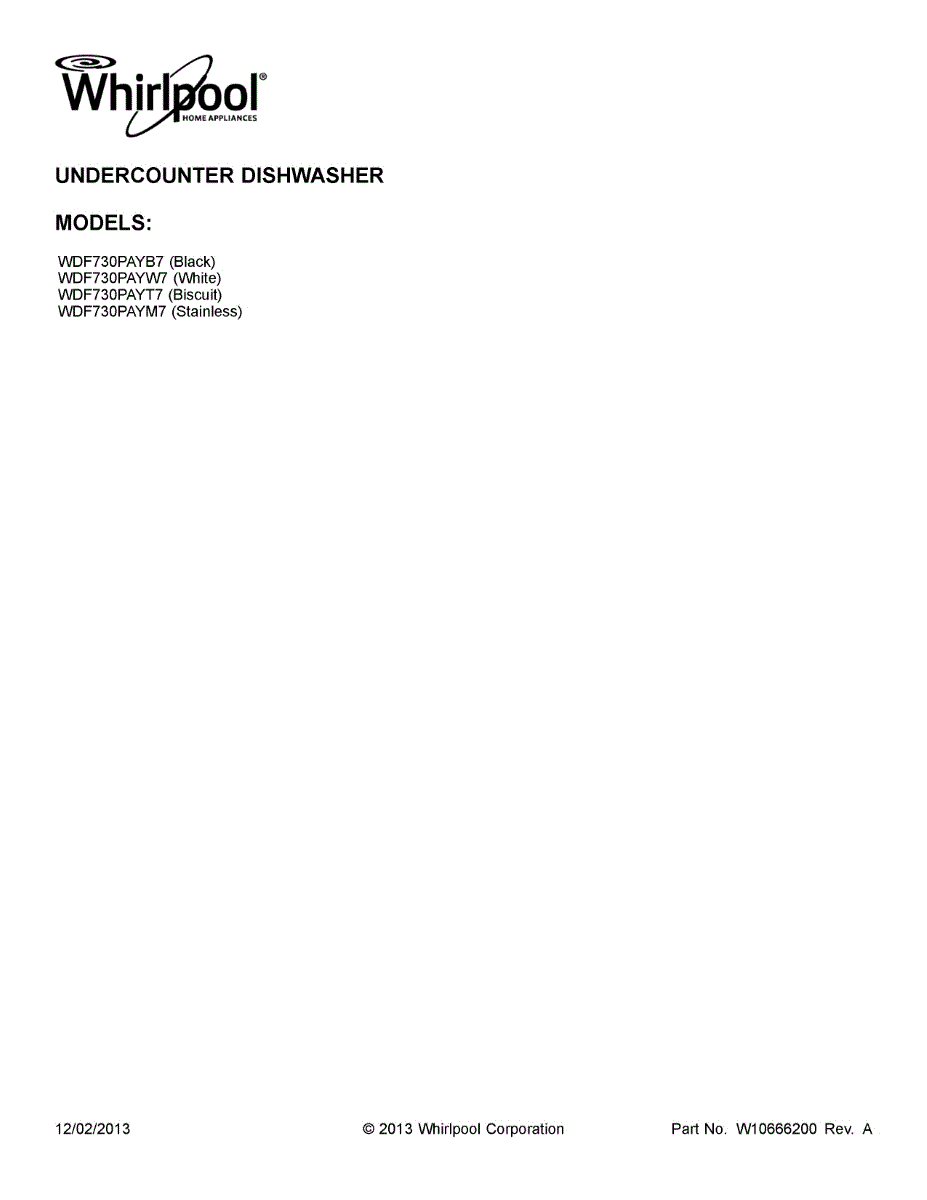 Parts for Whirlpool WDF730PAYB7: 01 - Cover Sheet Parts