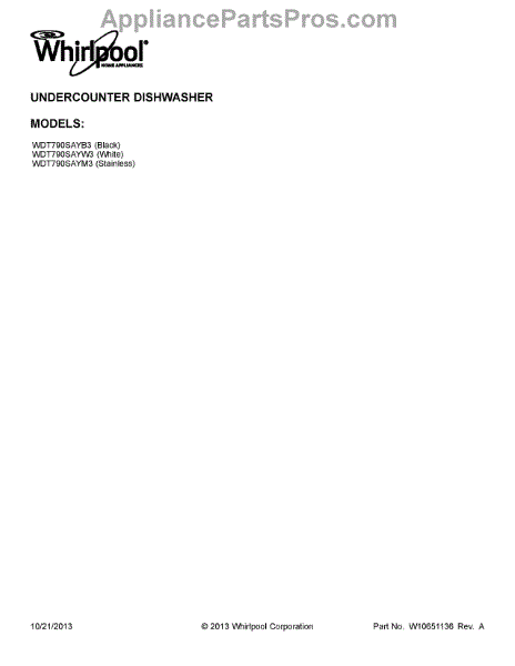 Parts for Whirlpool WDT790SAYB3: 01 - Cover Sheet Parts