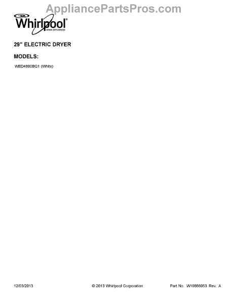 Parts for Whirlpool WED4800BQ1: 01 - Cover Sheet Parts
