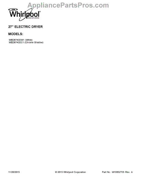 Parts for Whirlpool WED8740DW1: 01 - Cover Sheet Parts
