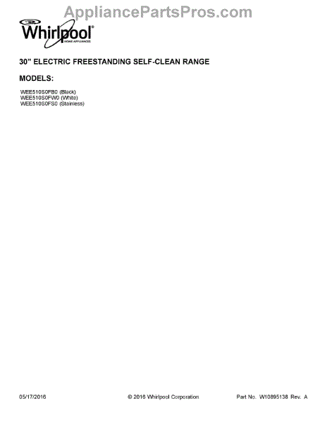 Parts for Whirlpool WEE510S0FW0: 01 - Cover Sheet Parts