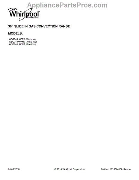 Whirlpool Range Parts
