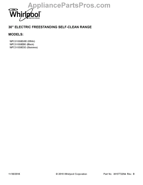 Parts for Whirlpool WFC310S0EB0: 01 - Cover Sheet Parts