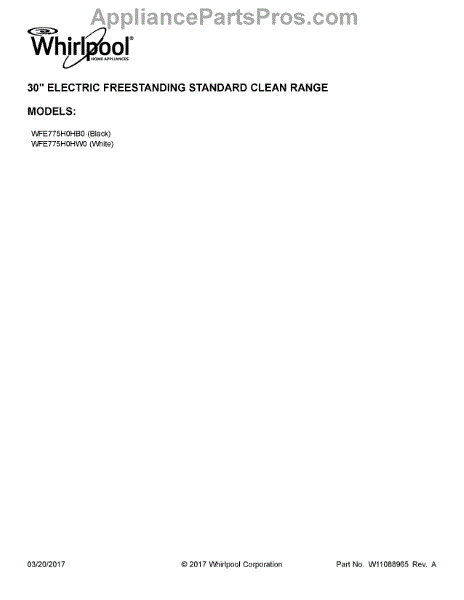 Parts for Whirlpool WFE775H0HW0: 01 - Cover Sheet Parts
