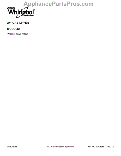 Parts for Whirlpool WGD5810BW0: 01 - Cover Sheet Parts