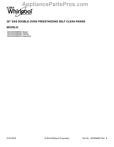 Parts for Whirlpool WGG555S0BW00: 01 - Cover Sheet Parts