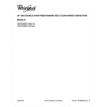 Parts for Whirlpool WGG755S0BS01: 01 - Cover Sheet Parts