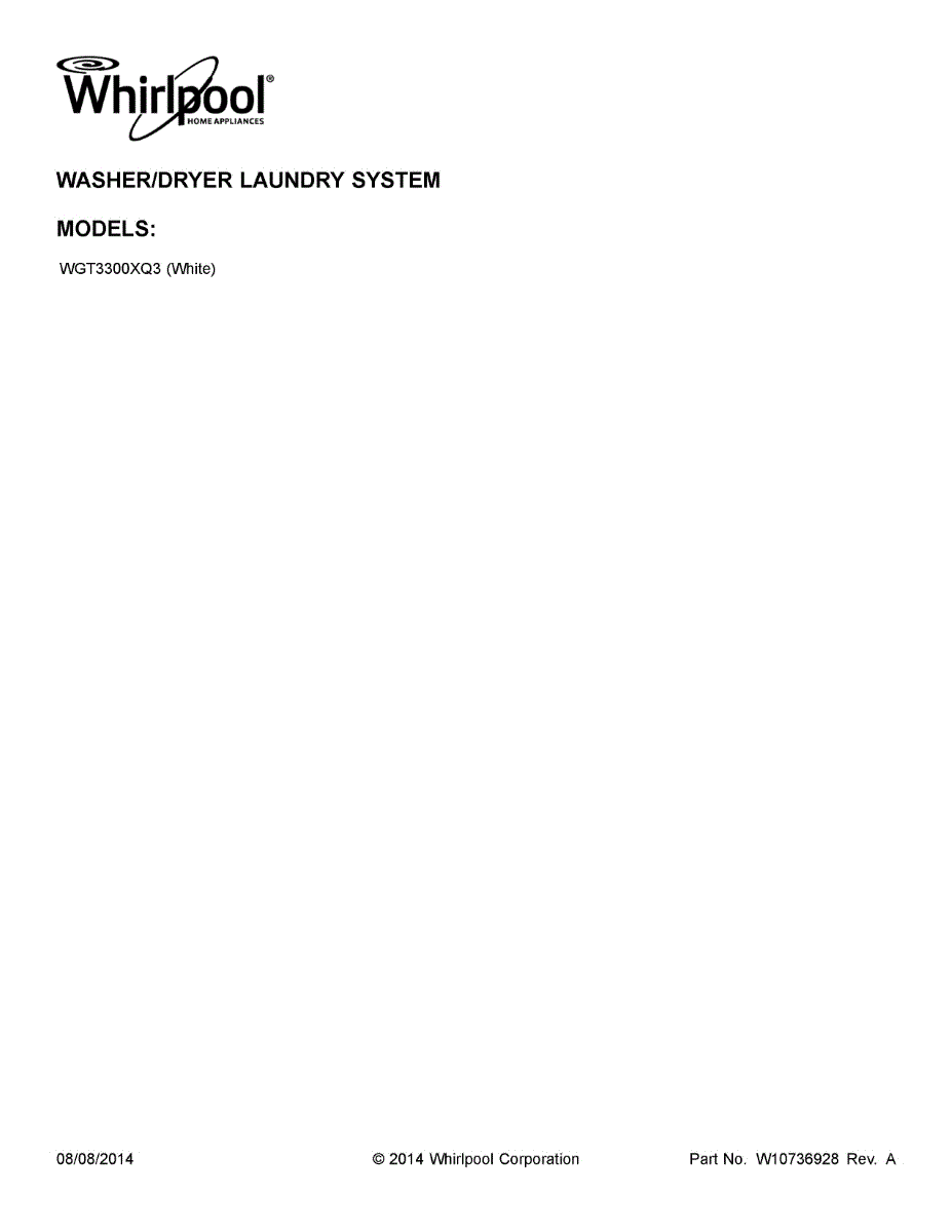Parts for Whirlpool WGT3300XQ3: 01 - Cover Sheet Parts