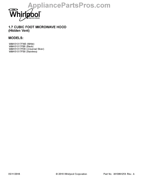 Parts for Whirlpool WMH31017FW0: 01 - Cover Sheet Parts