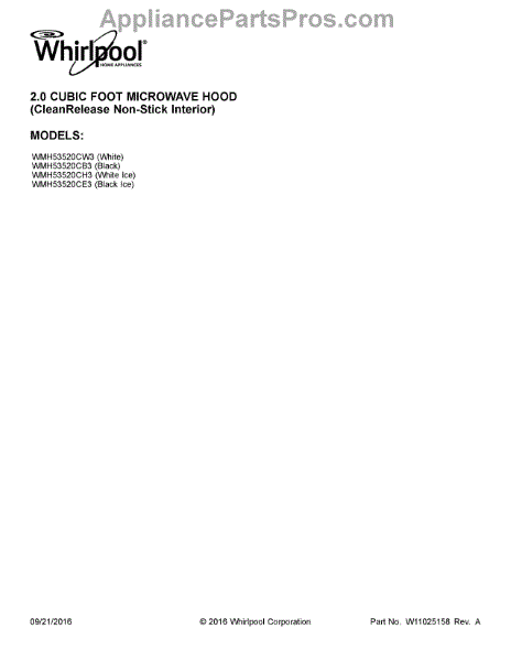 Parts for Whirlpool WMH53520CB3: 01 - Cover Sheet Parts