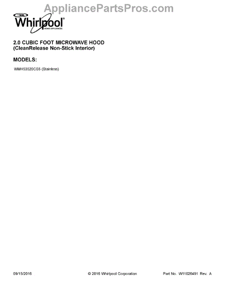 Parts for Whirlpool WMH53520CS5: 01 - Cover Sheet Parts
