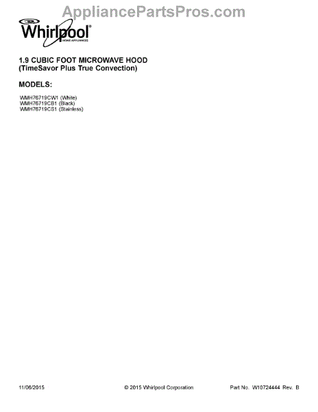 Parts for Whirlpool WMH76719CS1: 01 - Cover Sheet Parts